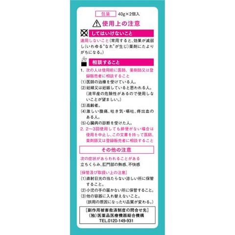 (使用後、すぐに排便を試みると薬剤のみ排出され、効果がみられないことがある。)