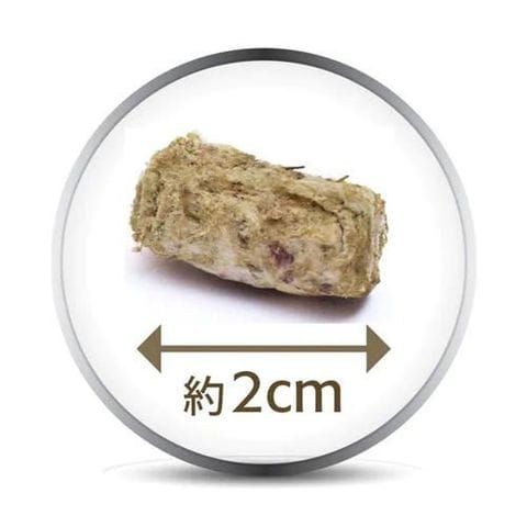 | 粗たん白質47.0%以上、粗脂肪35.0%以上、粗繊維2.0%以下、水分8.0%以下、100g中のカロリー (代謝エネルギー)549.0 kcal |