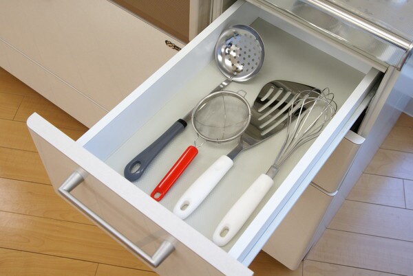 ●薄く敷きズレしにくい素材で、扉の開閉時も気になりません。