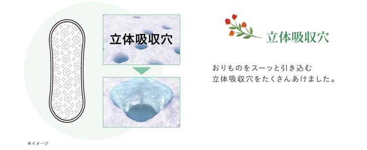 ●天然コットンの下に水分を吸引するさらさら繊維を重ねた表面シートで、さらっと肌にやさしい