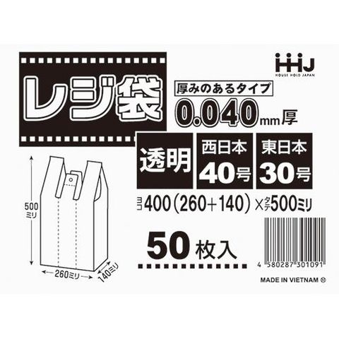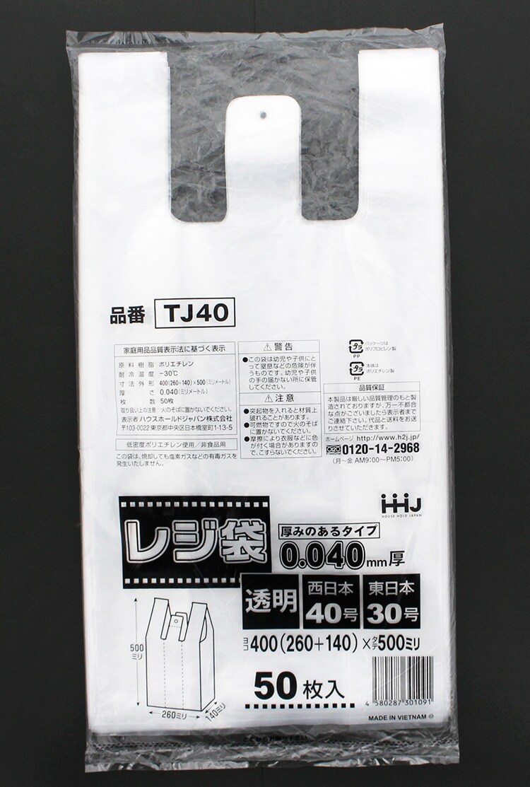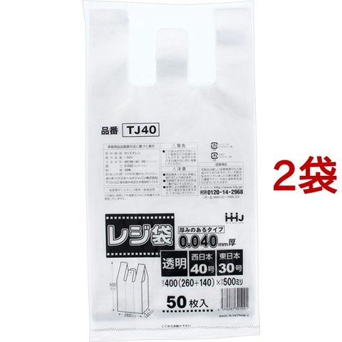 ポリ袋 取っ手付きレジ袋 厚手 透明 TJ40 (50枚入*2袋セット)