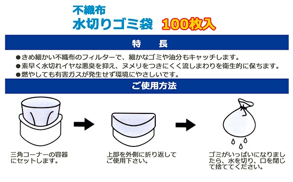 (ふしょっくふみずきりねっと フショクフミズキリネット 不織布水きりねっと 不織布みずきりネット さんかくこーなーよう サンカクコーナーヨウ ごみぶくろ ゴミブクロ ごみ袋 ぞうりょう ゾウリョウ)