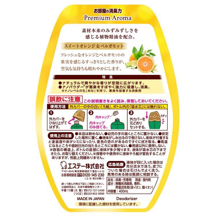 お部屋の消臭力 プレミアムアロマ スイートオレンジ&ベルガモットの香り (400ml*2個セット)
