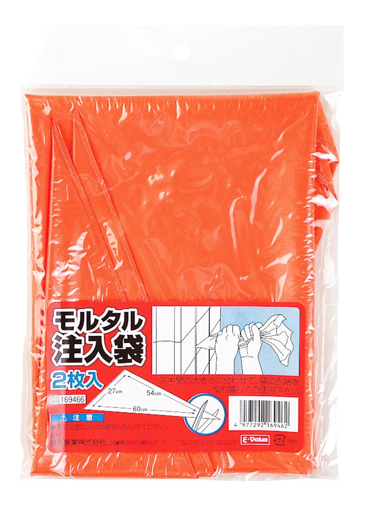 ●モルタルの注入。●隙間の大きさに合わせて袋の先端を切り落として使用します。