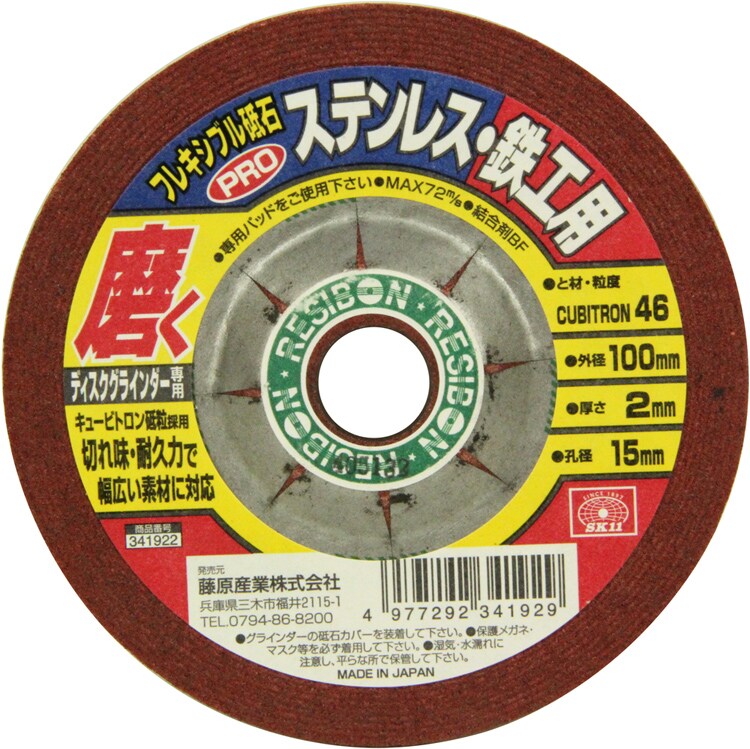 | ・サイズ(外径*厚さ*孔径):100*2*15mm ・砥材・粒度:CUBITRON46 ・最高使用周速度:72m/s ・ディスクグラインダー専用 ・材質:結合剤:BF |