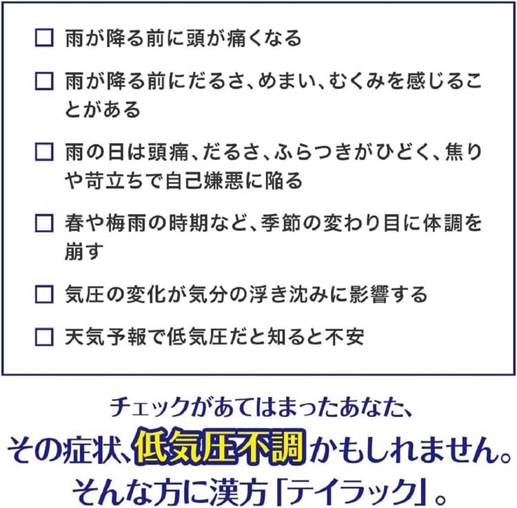 ●低気圧などによる複数の不調(頭痛・めまい・むくみ等)に効きます