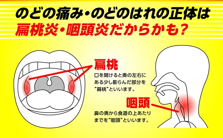 | 扁桃炎・咽頭炎(のどの痛み、のどのはれ)、口内炎 |