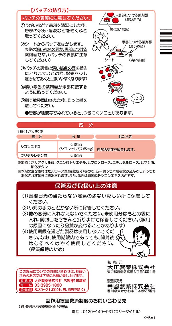 1患部に1回1枚、1日1~4回、患部粘膜に付着させて用いてください。