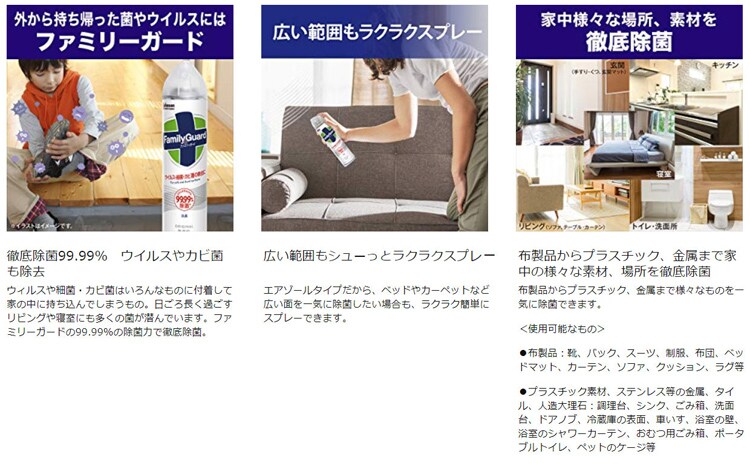 ●一年中いつでもどこでもファミリーガードでサッとスプレーするだけで徹底除菌*。