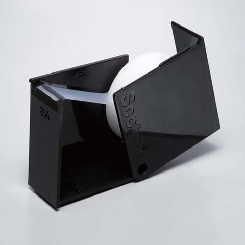 ●ボックス形状のテープカッター。テープが露出しないので、ホコリや汚れを防いで保管できる。