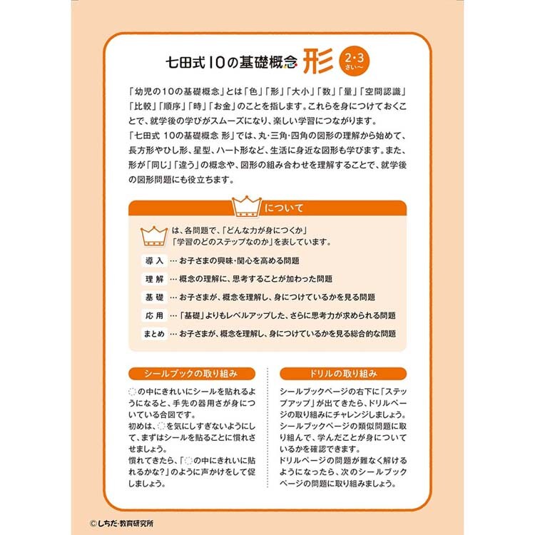 七田式 シールとえんぴつ 2・3さい かたち (1冊)