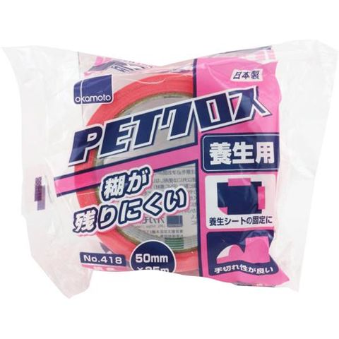 【オカモト PETクロス 養生用テープ 桃色 No.418の商品詳細】