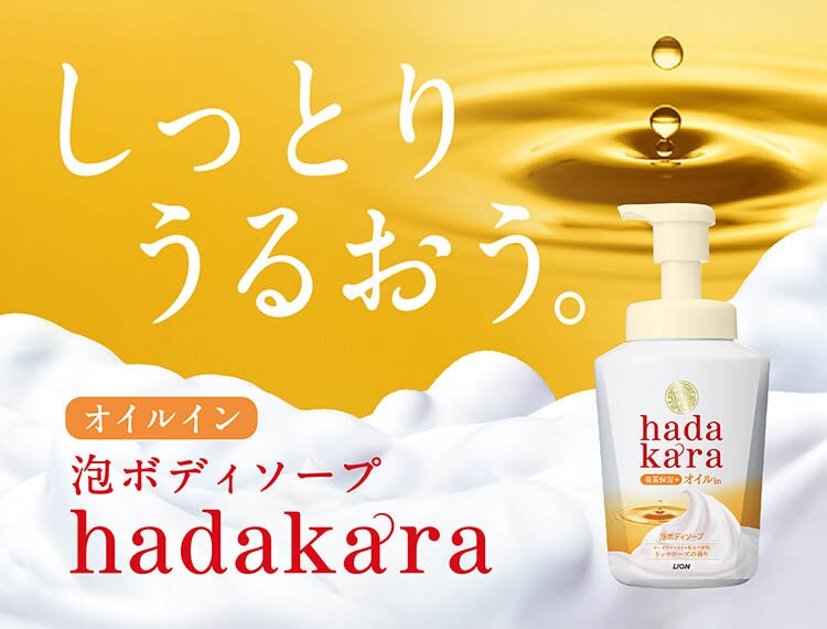 ●1プッシュでたっぷりのなめらか泡が出てくる「ハダカラ泡ボディソープ」のオイルインタイプ。
