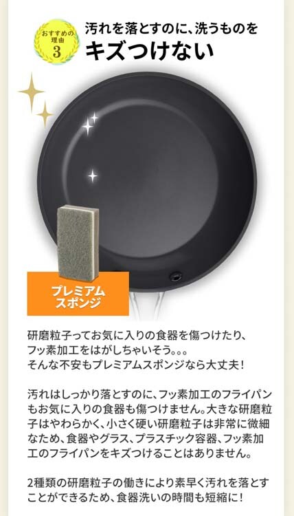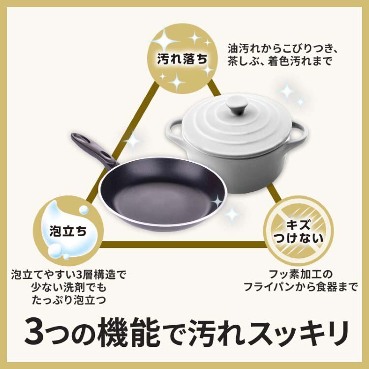 ●コゲ、こびりつき、油汚れ、茶しぶまですっきり落とす。