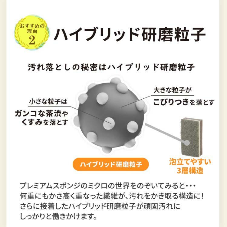 ●2つのパワーで汚れを落とす!ハイブリッド粒子。