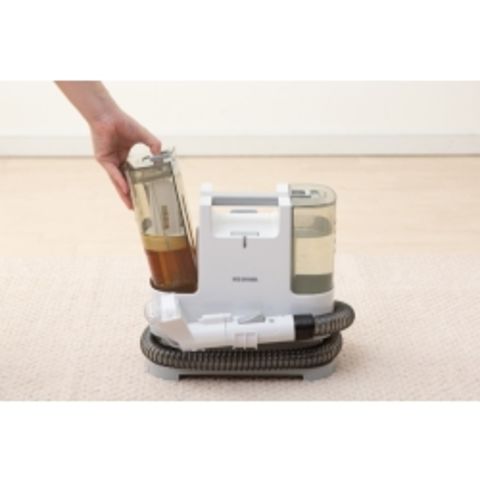 水を吹きかけ汚れを浮かせ、浮かせた汚れを水と共に吸い取ることができるリンサークリーナーです。電動ポンプ付きで、レバーを引くだけでラクに水を吹きかけることが出来ます。業務用の技術を、手軽に家庭でご使用いただけるよう、コンパクトな設計にしました。ソファや車のシートなど、布製品の洗浄に最適です。ブラシ付きヘッドで、汚れをかき出し吸引できます。T型ヘッドで、汚れの溜まりやすい隅や溝の汚れも吸引できます。