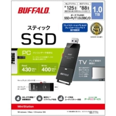BUFFALO バッファロー SSD-PUT1.0U3BC/D 外付けSSD ポータブル USB3.2 Gen1 スティック型 TV録画対応 1.0TB ブラック