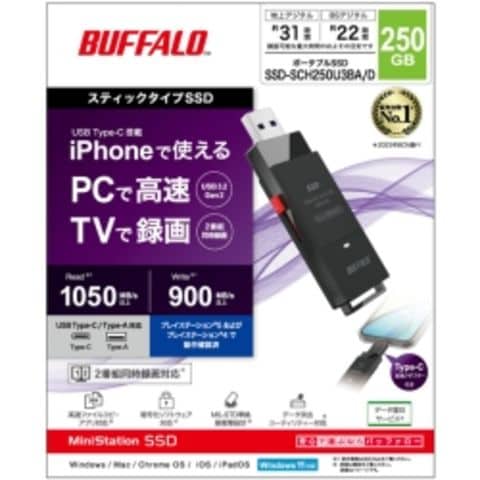 バッファロー USB3.2(Gen2)対応 TV録画 スティックSSD 250GB ブラック USB Type-Cコネクタ付属 SSD-SCH250U3BA/D