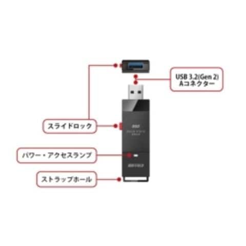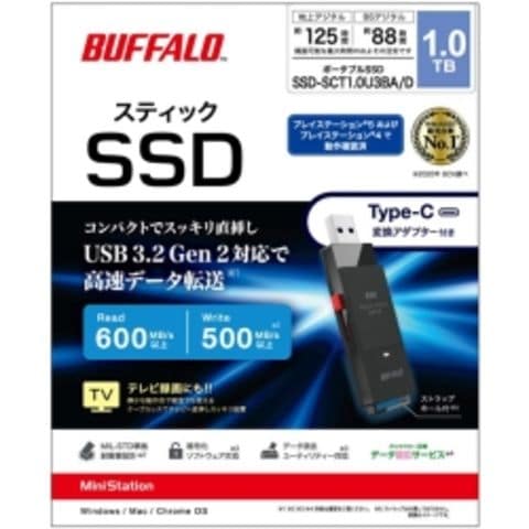 バッファロー 外付けSSD ポータブル USB3.2 Gen2対応 スティック型 TV録画対応 Type-Cコネクタ付 1.0TB ブラック SSD-SCT1.0U3BA/D