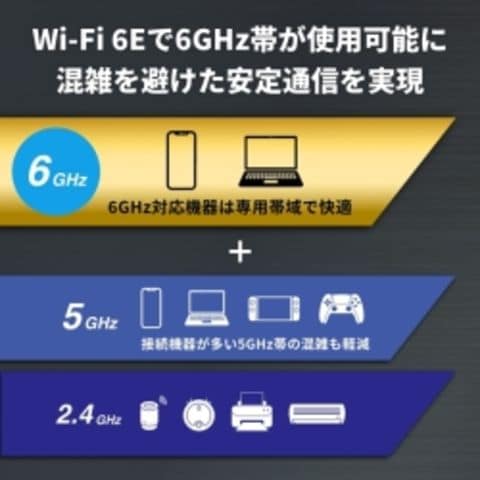 | メーカー商品ページ | 無線LAN親機 WiFiルーター 11ax/ac/n/a/g/b 2401+2401+573Mbps WiFi6E/Ipv6対応 ネット脅威ブロッカー2ベーシック搭載 チタニウムグレー |
