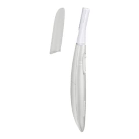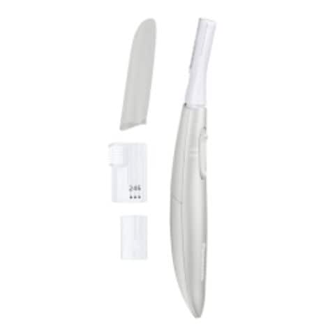 1.丸い刃先で肌にやさしい、約0.12mmのうす刃。水なしですっきり剃れる。2.肌の凸凹に合わせて動く、密着スイングヘッド。3.マユのお手入れができる。マユカバーとマユコーム付き。