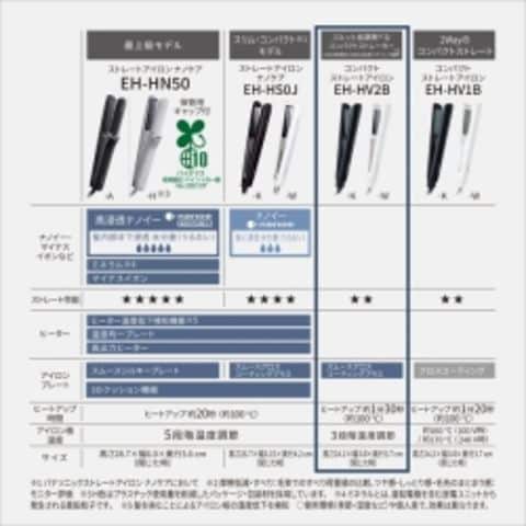 1.キューティクルへの摩擦を低減、すべりやすく髪にやさしい。「スムースグロスコーティングプラス」新搭載。(Panasonicコンパクトアイロンにおいて)2.3段階 温度調節付き。3.旅行に持っていきやすいコンパクト&オートボルテージ。