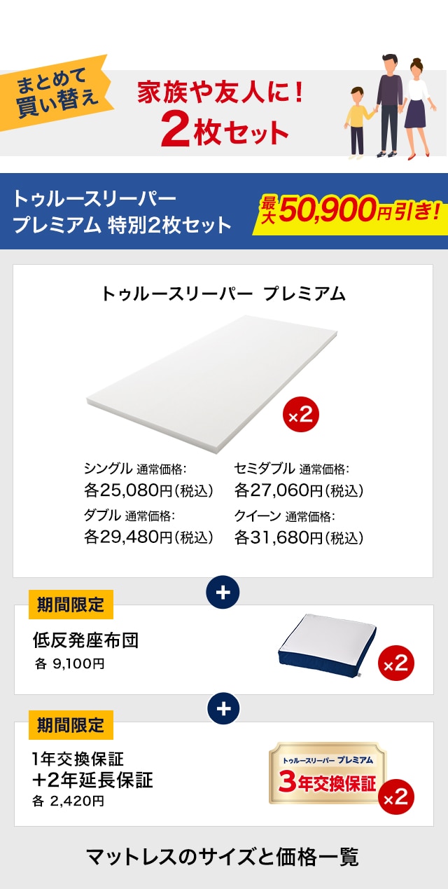 ショップジャパンWOWセール トゥルースリーパー プレミアム 特別2枚セット(セミダブル×クイーン)【販売元:ショップジャパン】TRSP200