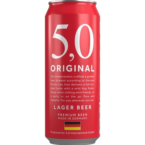 5.0 Original Lager Beer 5.4% 500ml フルボディの味わいとマイルドなホップの香り、コクのある味わい。