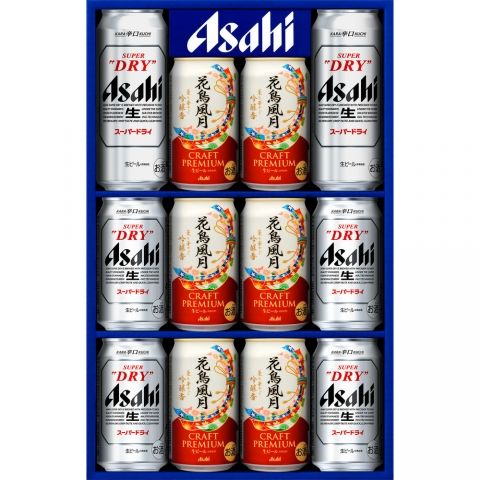 アサヒ スーパードライと、和のプレミアムビール「花鳥風月」のギフトセットです。
