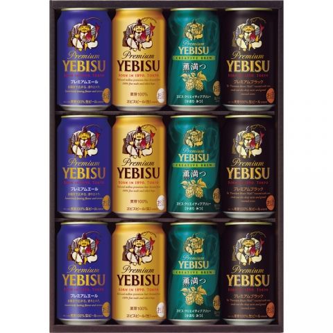 エビスの遺伝子を引き継いだ黒「プレミアムブラック」入り [セット内容] エビス ●オリジナル ●クリエイティブブリュー薫満つ ●プレミアムエール ●プレミアムブラック 各350ml×各3缶