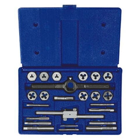 - セット内容:サイズ-ピッチ:(メトリック)M3-0.5・M4-0.7・M5-0.8・M6-1.0・M7-1.0・M8-1.25・M9-1.25・M10-1.5・M12-1.5・M12-1.75、(BSP)1/8”-28、ダイスハンドル1本、タップハンドル1本、プラスチックケース