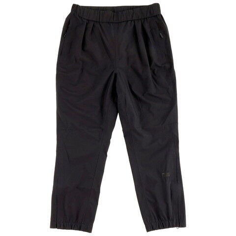 ウエスト部分はゴム&スピンドル入りで、腰回りにゆとりを持たせつつ裾を若干細くして足さばきがしやすいテーパードシルエットの3レイヤーレインパンツパターン設計でウエスト周りにゆとりを持たせ、