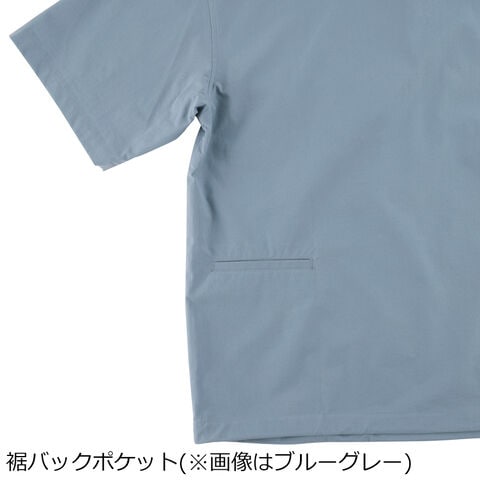 左胸には切替利用のスリットポケット、背面左裾にはスマートフォンなどを入れるポケット付き。