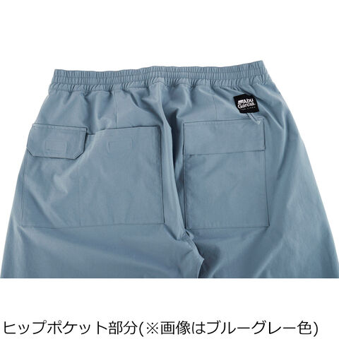 ウエストはゴム&紐の仕様のイージーパンツ仕立て、裾にはゴムスピンドル入りで、春から秋のフィッシングシーンや普段使い、汗をかく時期や小雨時など重宝するアイテムです。