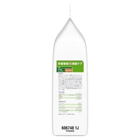 ■原材料:小麦、コーングルテン、亜麻仁、セルロース、トリ肉(チキン、ターキー)、エンドウマメ、トマト、チキンエキス、ビートパルプ、魚油、ココナッツ油、米、ニンジン、加水分解豚軟骨、加水分解甲殻類、ミネラル類(カルシウム、ナトリウム、カリウム、クロライド、銅、鉄、マンガン、セレン、亜鉛、ヨウ素)、アミノ酸類(タウリン、メチオニン、リジン)、乳酸、ビタミン類(A、B1、B2、B6、B12、C、D3、E、ベータカロテン、ナイアシン、パントテン酸、葉酸、ビオチン、コリン)、酸化防止剤(ミックストコフェロール、ローズマリー抽出物、緑茶抽出物)、カルニチン、リポ酸