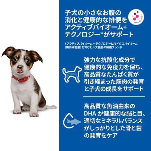 ◆マイクロバイオーム(腸内細菌叢)を育むヒルズ独自の繊維ブレンド「アクティブバイオーム+テクノロジー」が、子犬の小さなお腹の消化と健康的な排便をサポート。