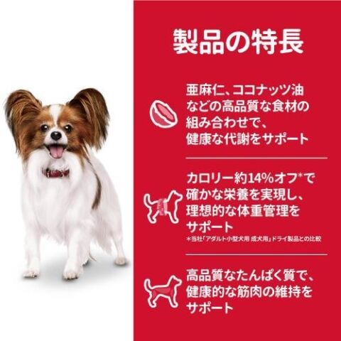(ヒルズ「アダルト小型犬成犬用」ドライ製品との比較)