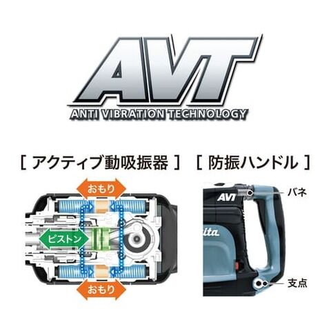 「防振ハンドル」ハンドル下部を支点に、バネで振動を吸収。