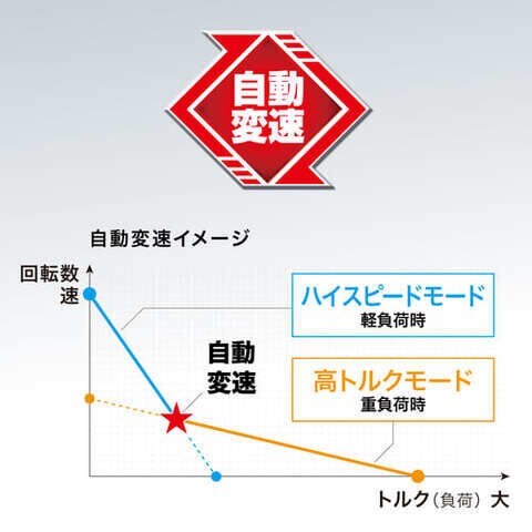 軽負荷時はスピーディに、重負荷時はパワフルに自動切替。