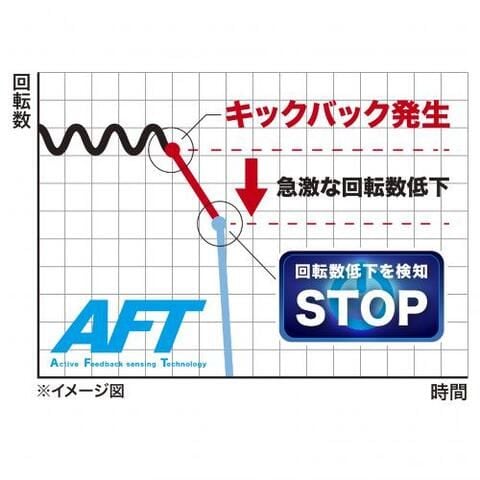 キックバック(跳ね返り)を起こした時に発生する、急激な回転数の低下を検知し、刃物を素早く停止。