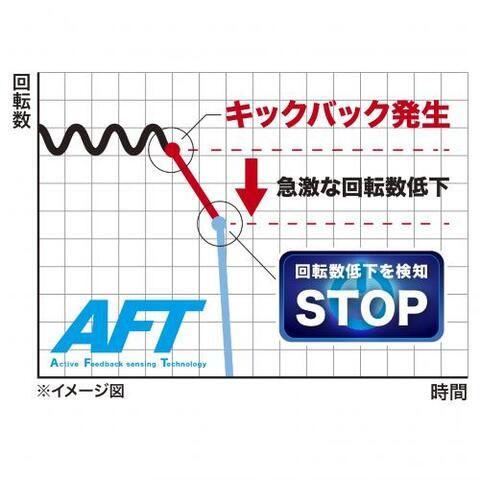キックバック(跳ね返り)を起こした時に発生する、急激な回転数の低下を検知し、刃物を素早く停止。