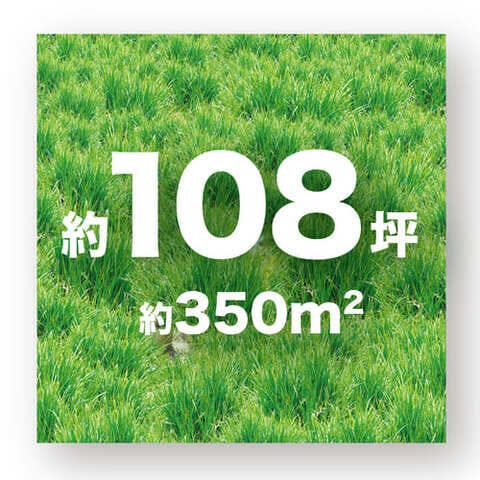 実作業面積では約108坪(350m2)楽らくモード使用/6.0Ah時。