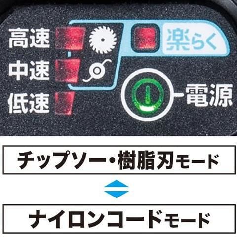「チップソー・樹脂刃」と「ナイロンコード」に最適な回転数を設定。