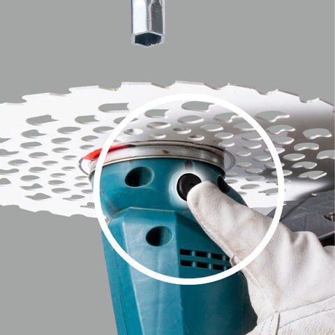 キックバック(跳ね返り)を起こした時に発生する、急激な回転数の低下を検知し、刃物を素早く停止。