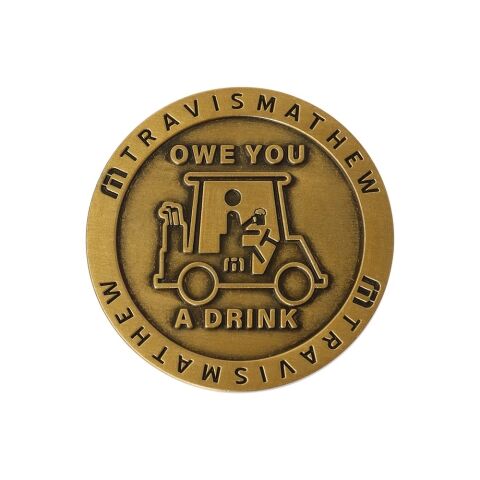 ◆両面には「OWE YOU A DRINK(一杯おごる)」「OWE ME A DRINK(一杯おごってもらう)」のメッセージ入り。