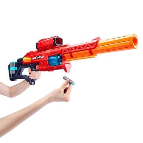 エックスショットのエクセル レンジャーは、27m先のターゲットに挑むのに十分なパワーを備え、わずか数秒で8発のダーツを素早く連射できるボルトアクションのプライミング機構を搭載。