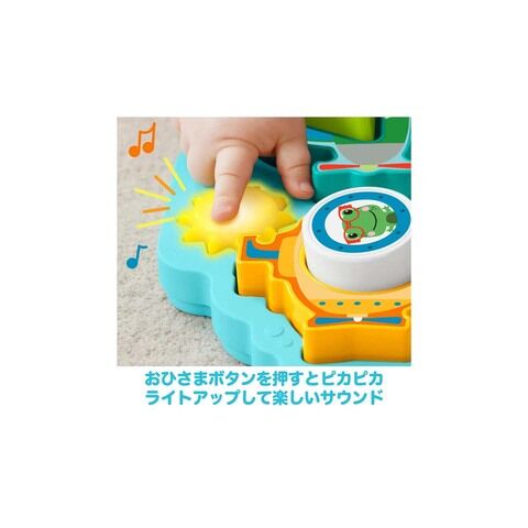 にこにこ! たいようさんのボタンを押すと、ライトアップして楽しい歌とサウンドが流れます。
