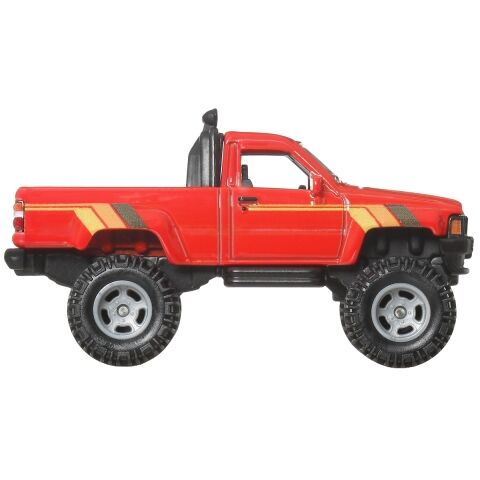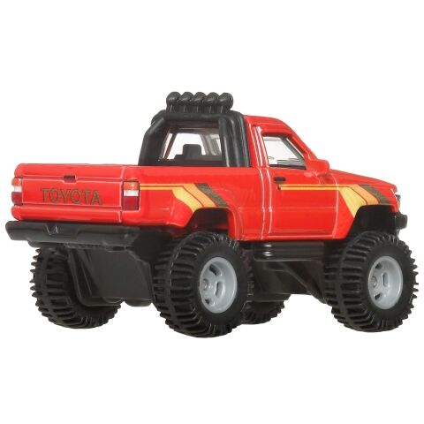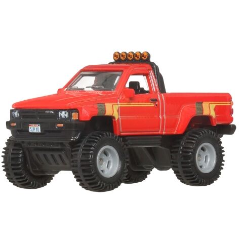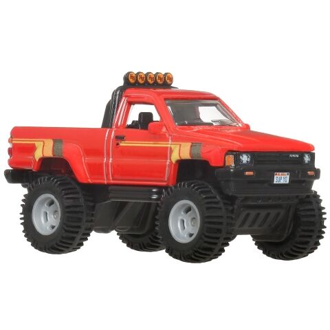 ホットウィールは1983年登場のハイラックスとしては4代目となる車両を題材に選び、オフロード走破性を高めるべく、車高を高く上げ、大径タイヤを履いたハイリフト・カスタムが施された状態を表現。