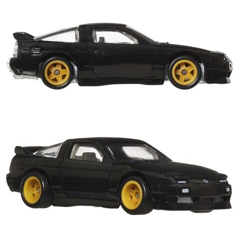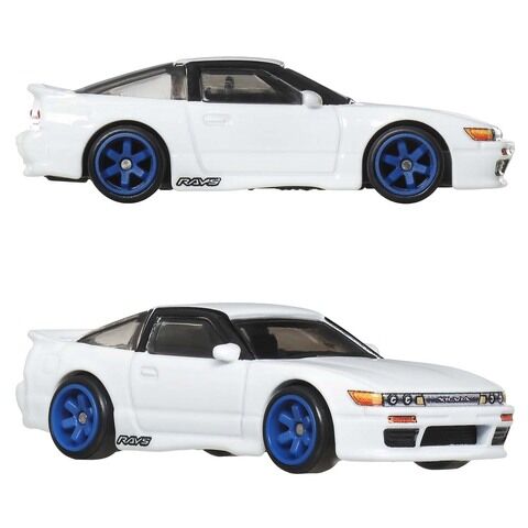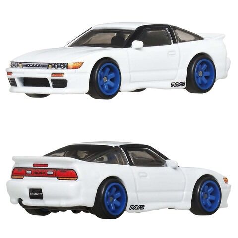 ホットウィールでは後期型の180SXと、180SXのフロントマスクをシルビアのそれとそっくり入れ替えるカスタム手法で生み出されたシルエイティの2台をセットにしている。
