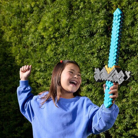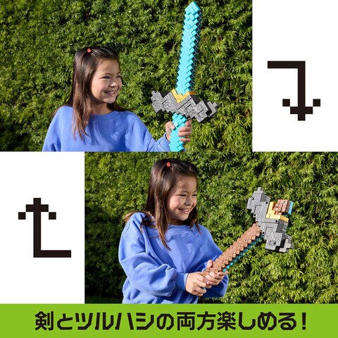 ボタンを押すだけのワンタッチでツルハシが剣にチェンジ! マインクラフトの世界で冒険を楽しもう!